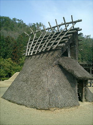 縄文中期になって竪穴式住居跡が発見される。その跡に建物が復元してあるが、この復元建物はちょっと近代的すぎるような