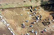 下は平成9年の発掘現場一般公開時の第4工区を上空から見たもの。