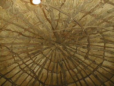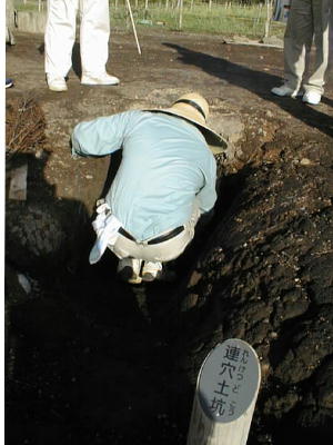 落とし穴の中には尖った杭が立ててあり、落ち込んだ動物が刺さって死ぬようになっている。縄文時代、大型の動物は捕ら