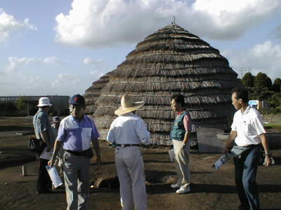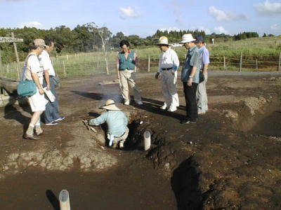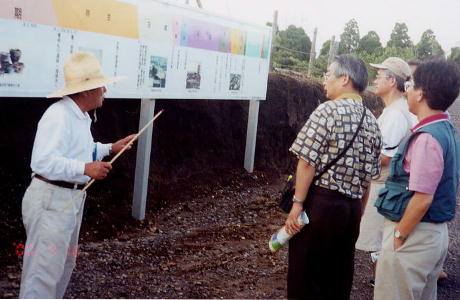 さん達は発掘作業にも従事したそうである。我々に説明してくれたこのおじさんは石臼を掘り当てた。(後出)