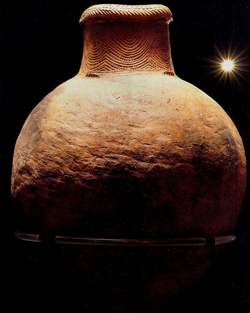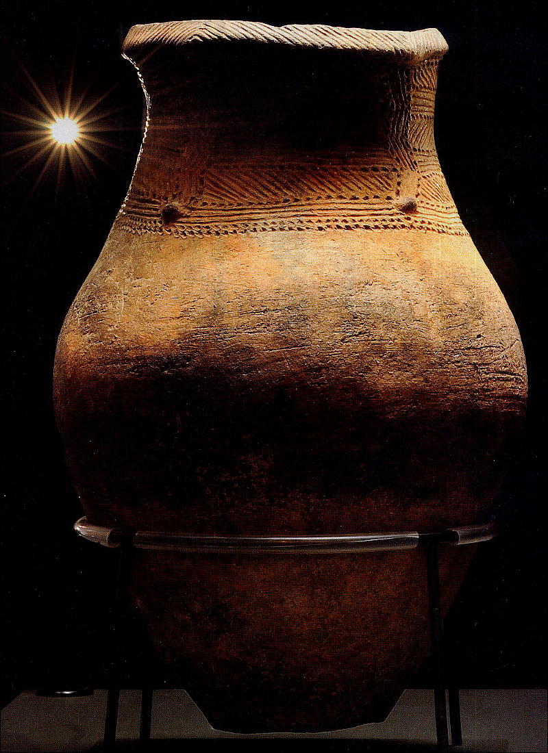 この遺跡からは、さらに驚くべきものも出土した。弥生土器を思わせる約7,500年前の地層から出た「壺型土器」であ