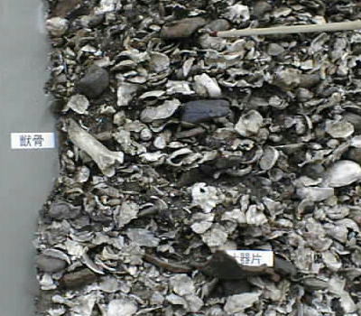 ル、甲殻顛のモクズガニ、タイ、サメ、ハタ、マグロなどの魚類や沢山の貝類が出土している、これらのことから、当時