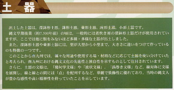 施設や遺物は、定住に近い社会および高度な精神文化が南九州のこの時期に発達していたことを物語っているのではないだ