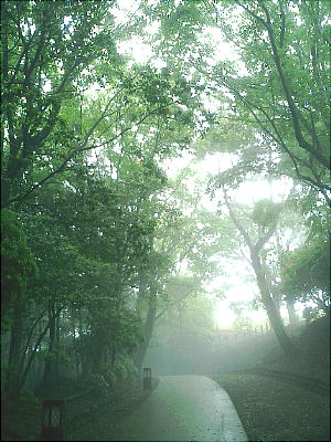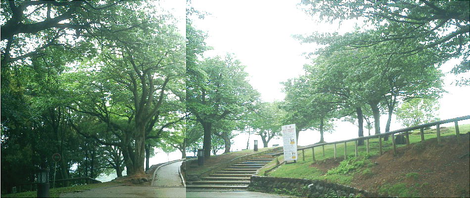 連中を見て、「クソー、俺もそっちから一度来てやるぞ」と思ったのを思いだし、wifeと再び訪れた。生憎の雨だ