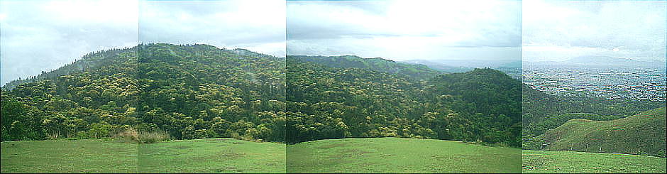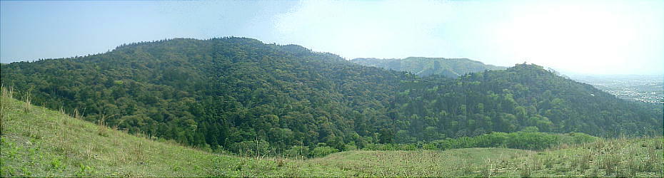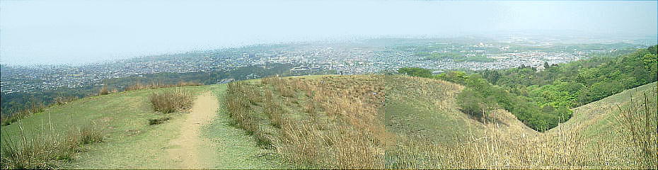 若草山の二重目からの眺望。頂上からは北に山城の山々、南に二上山、葛城山、金剛山の山々が望まれて、西に、矢