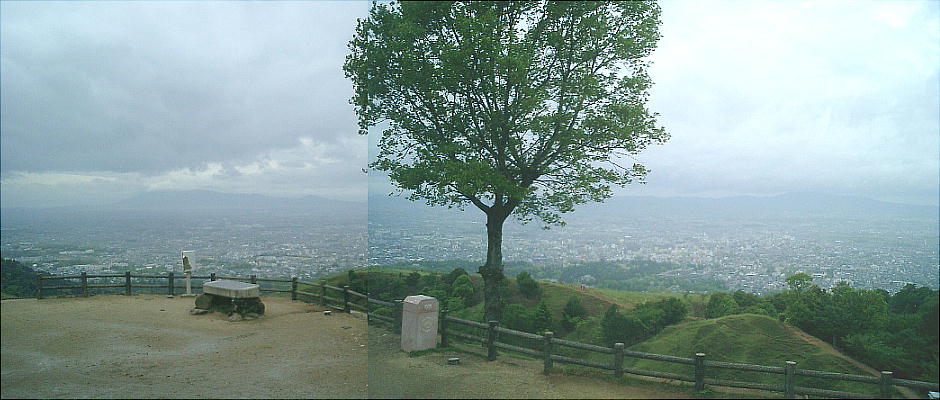 田山系越しに生駒山系が望める。更に眼下には、春日大社・東大寺・平城京跡なども見る事が出来る。周囲には大き