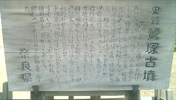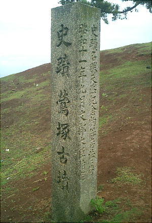 れた碑が後円上部にあり、幾つかの書物にもこの塚のことがしるされている。また「鶯塚」と名付けられた由来の
