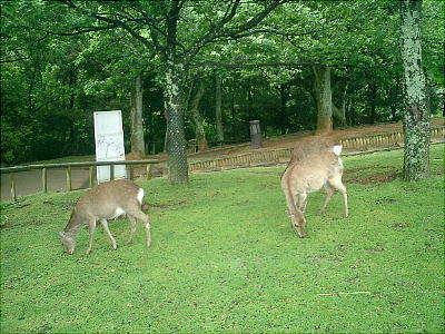 雨の中でも鹿は食物を求めてさまよう。山麓へ降りて鹿せんべいを貰っている鹿達もここへ登ってくるのだろうか。