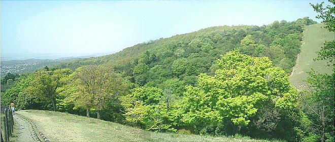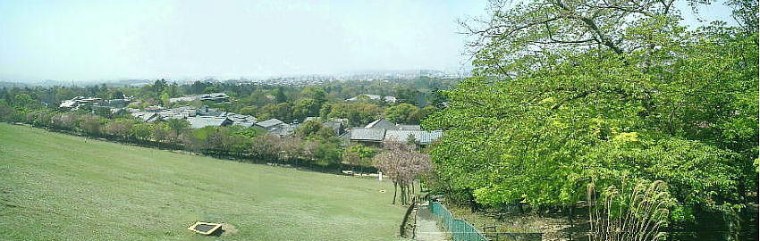 上の写真の右側から、下の写真左側へと繋がっている。奈良の街を一望できる大パノラマが展開している。