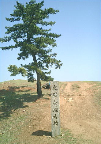 「鶯陵」の碑が立っているところが後円部で、ここに立つと、この古墳が前方後円墳なのが一目瞭然である。
