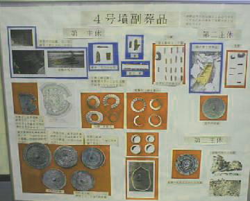 り、中から木棺と三角縁神獣鏡など5面の鏡、玉(硬玉製)、鉄利器(刀剣、農機具)、石剣、車輪石等が出土した。それ