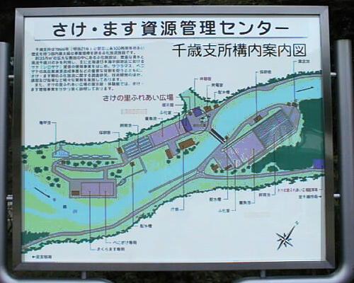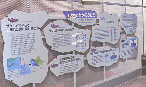遺跡の先には、サケ・マスふ化実験場があり、資料館もあってサケ・マスの一生や生態などをわかりやすく解説している。