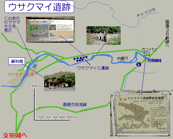 ウサクマイ遺跡群は、ナイベツ川(全国の「名水百選」に選ばれた。)流域に残る24ヵ所の遺跡と千歳川右岸(北側)のウ