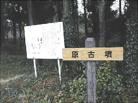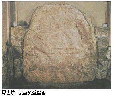 原(はる)古墳は横穴式石室を持つ円墳で、現在奥の壁が裏返された形で保存されているという。写真で見てもこの壁