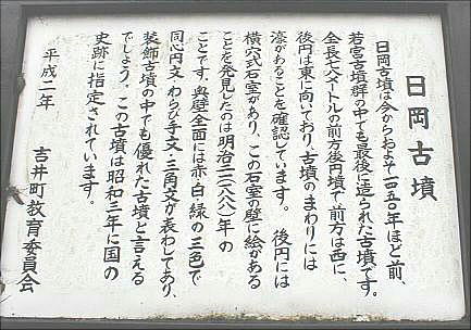 ここに装飾古墳群が密集している事は古くから知られていた。中でも有名な日岡(ひのおか)古墳は既に盗掘にあい副