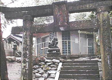 下、鳥居の向こうに立っている建物から古墳の中に入れるようになっているらしかったが(後で聞いたら上から覗くよ