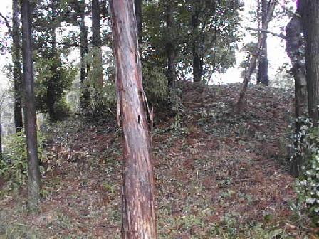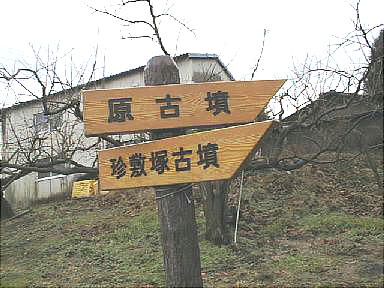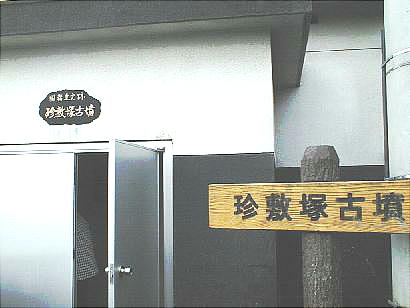 珍敷塚(めずらしづか)古墳。古墳時代前期。昭和25年採土の際発見されたが今は、この古墳にはもう何にもない。古