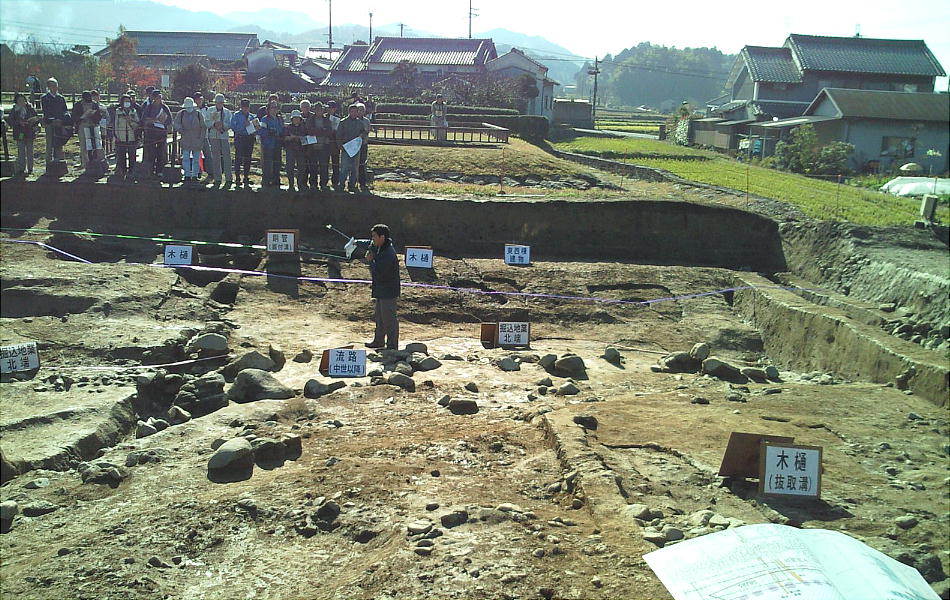 みつかり、このあたりは飛鳥浄御原宮の候補地にもなっている。1981年からの調査で、7世紀中頃から8世紀初めの建物跡や溝など