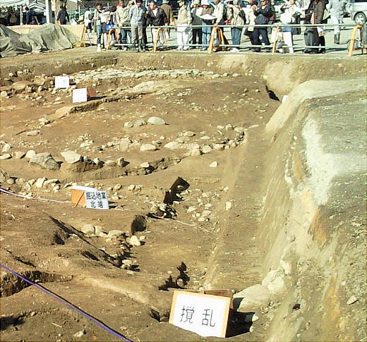 あちこちに「攪乱」とあるので何か聞いて見たら、文字通り、廻りの土や圧力で攪乱されている跡だと言う。まんまやね。