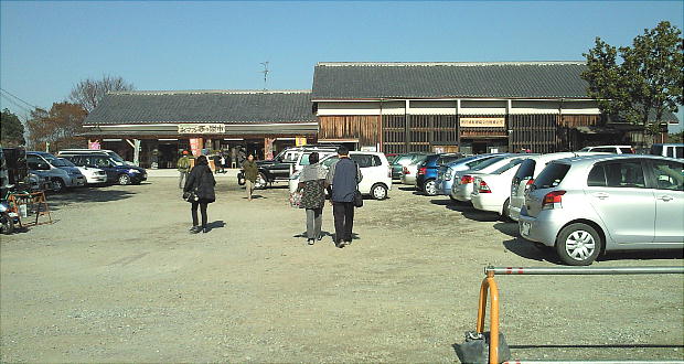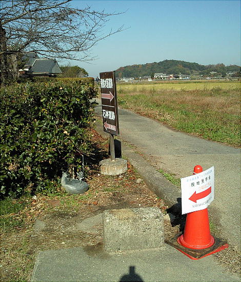 「明日香村埋蔵文化財収蔵庫」が見えており、その左には飛鳥で取れた農産物を売っている店がある。私が説明を聞いて、写真を