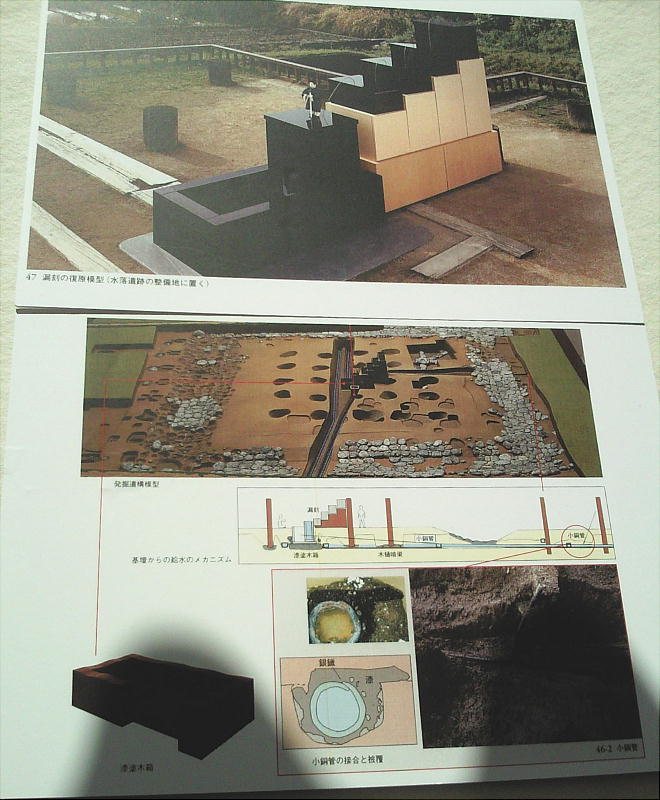 水落遺跡の水時計は、当時最新の技術によって作られていたであろうと思われる。四段式漏壺、あるいは、三段式漏壺であったか