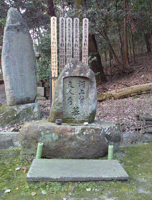 河上肇と夫人の墓。大きな顕彰碑が建っている。