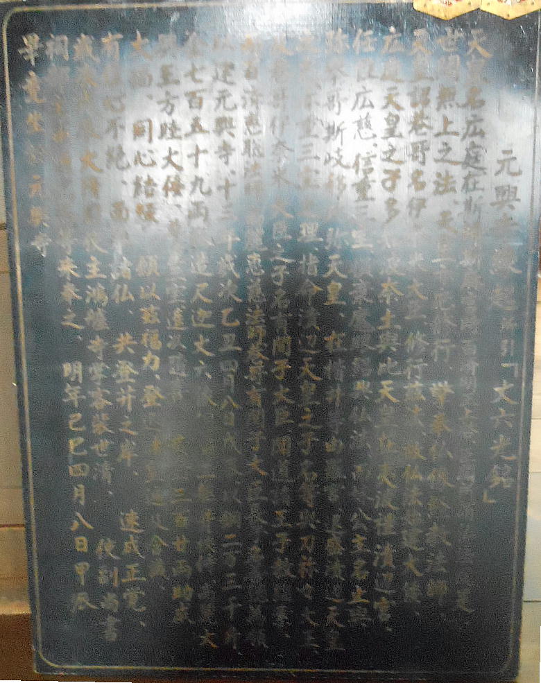 (醍醐寺本『諸寺縁起集』所収、以下『元興寺縁起』という)、ならびに同縁起に引用されている「露盤銘」と「丈六光銘」に記載が