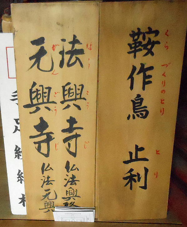 金堂に安置」しようとしたところ、像高が金堂の戸よりも高くて入らないので、戸を壊そうと相談していたところ、鞍作鳥の工夫によ