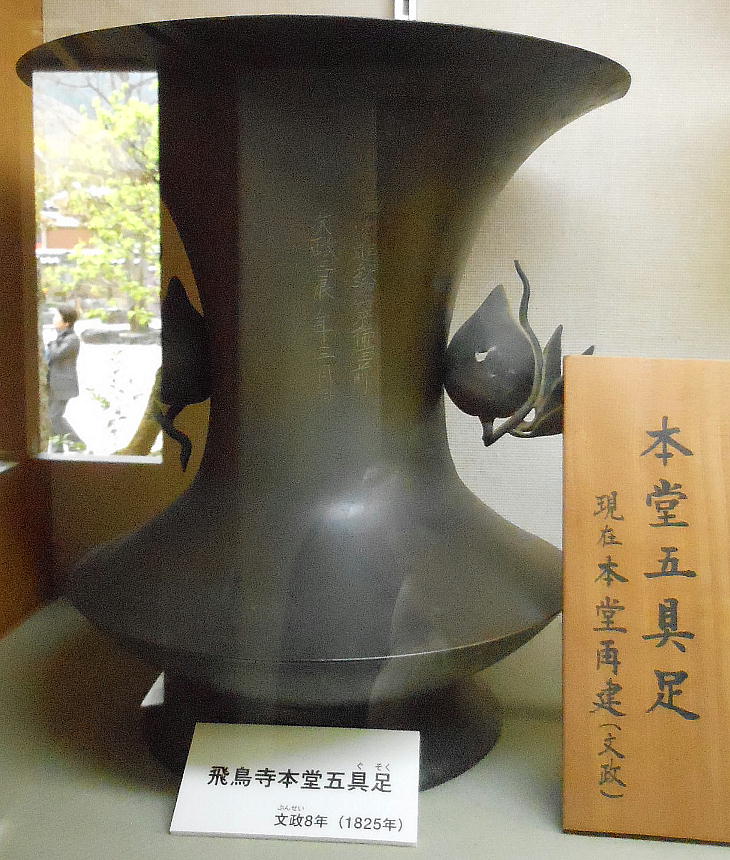 ことが分かった。このことから、石造の台座は当初から銅造釈迦如来像を安置するために造られたものであり、飛鳥大仏は飛鳥時代か