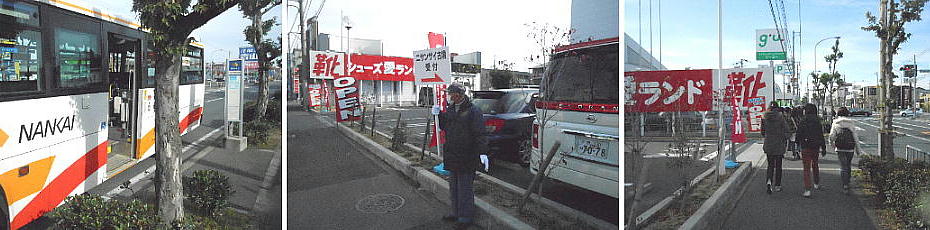 南海電車「中百舌鳥(なかもず)駅」を降りたら説明会会場行きのバスを案内する人が立っていた。