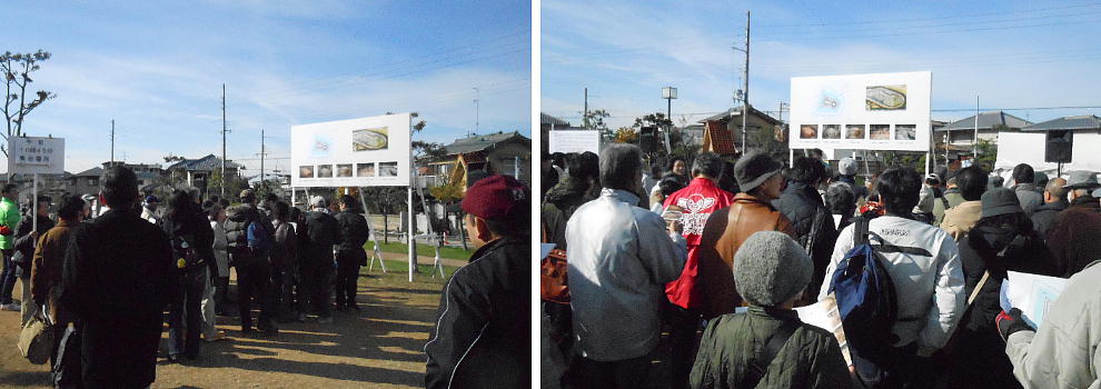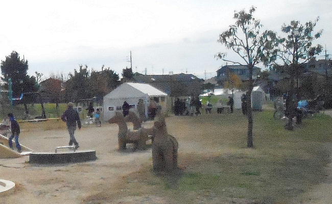 ここで説明を聞いて、終わったグループから古墳の見学に出発。古墳の廻りには広場が無いので、この公園を説明会場にあてている。
