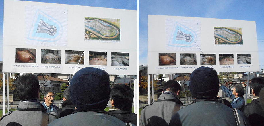 ここで堺市の職員から古墳の概要、今回の調査の概要、結果等の報告を聞く。内容はおおむね新聞記事と変わらない。