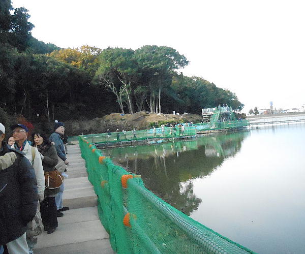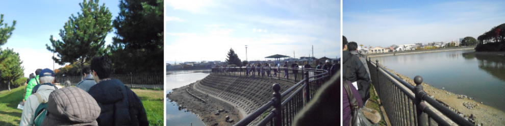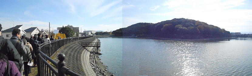 話を聞き終わり、グループ毎に古墳へ向かう。みんな写真を撮りながら進む。壕の中にはシラカギや鴨がいた。