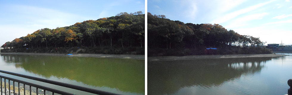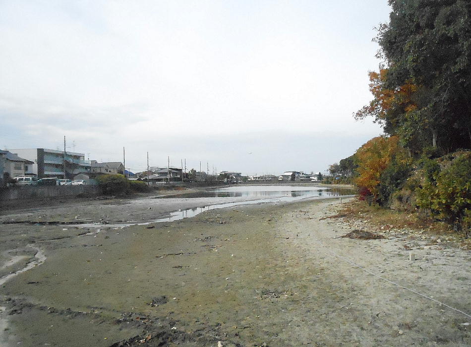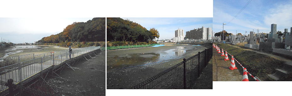 最初に見た@の現場を対岸から。こんなに汚れた壕の中にもサギの餌になる魚がいるんだねぇ。