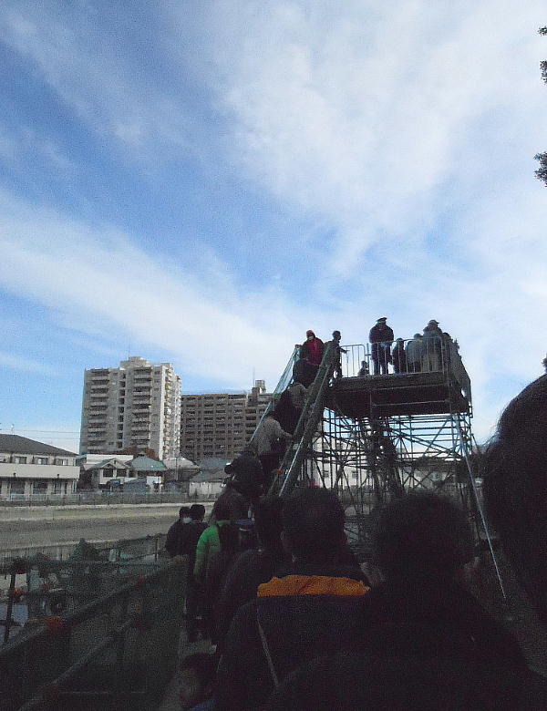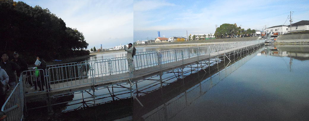 それでもドッと渡ると心配らしく、橋を渡るのは20人づつだった。昨日は2千人、今日は今の所千人の見学者だそうである。