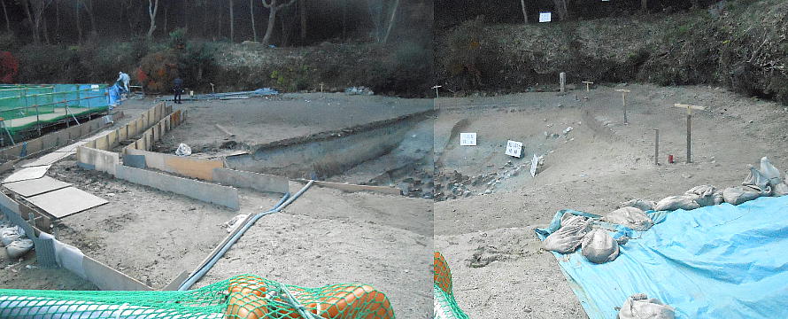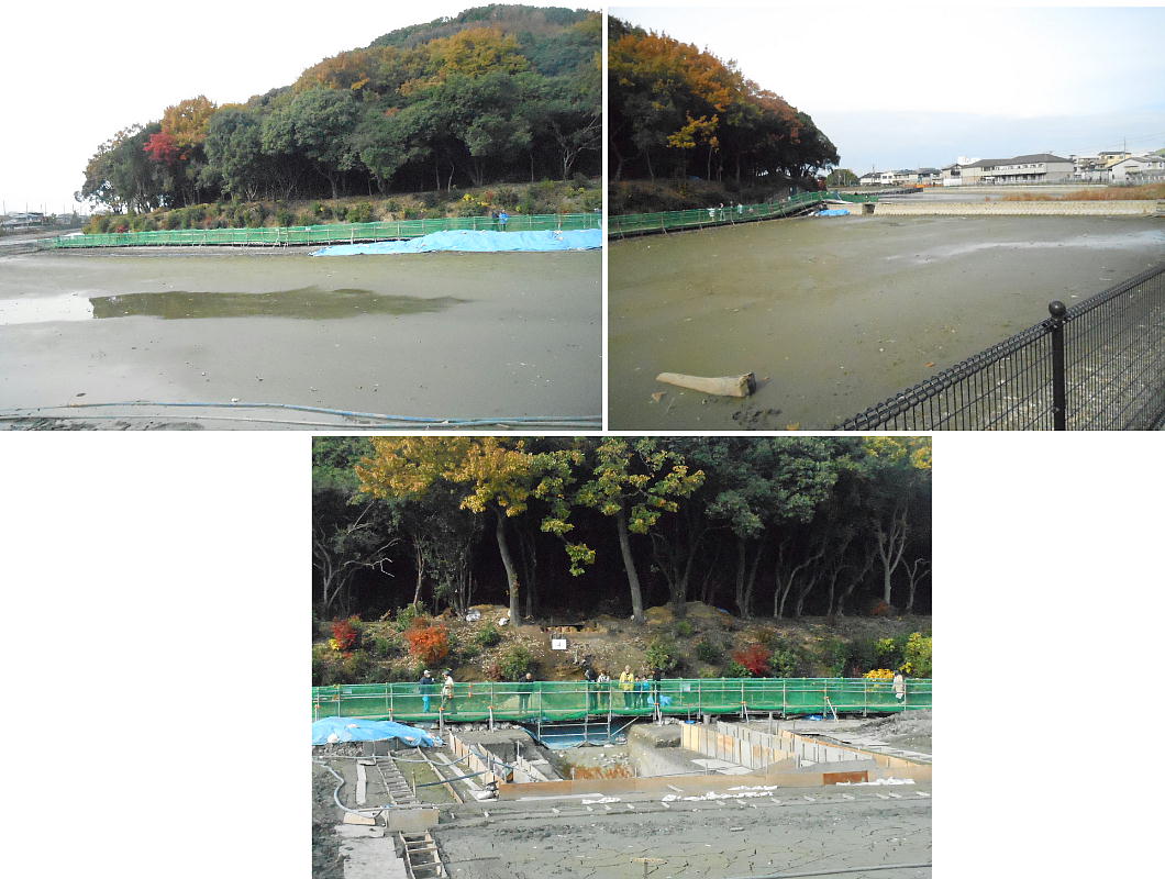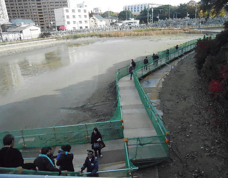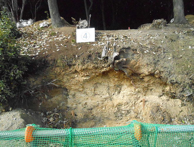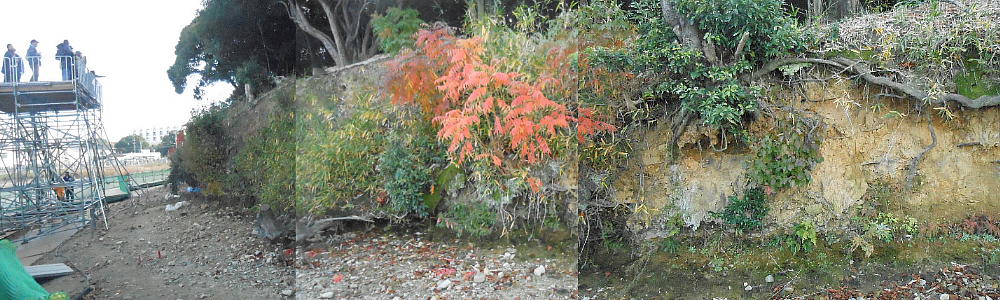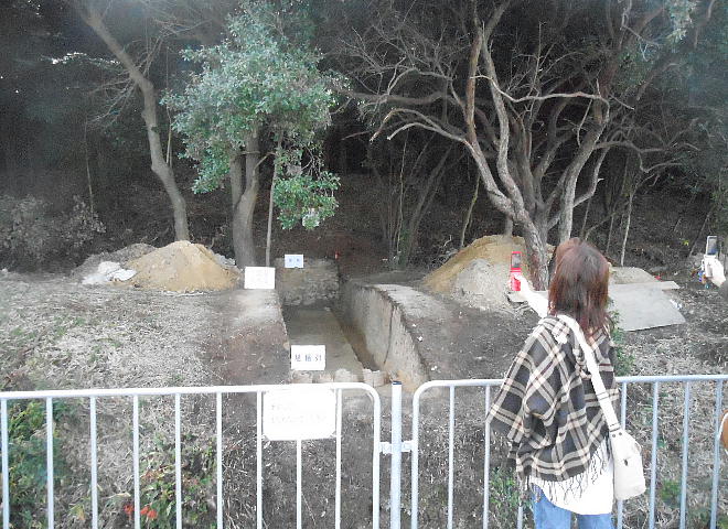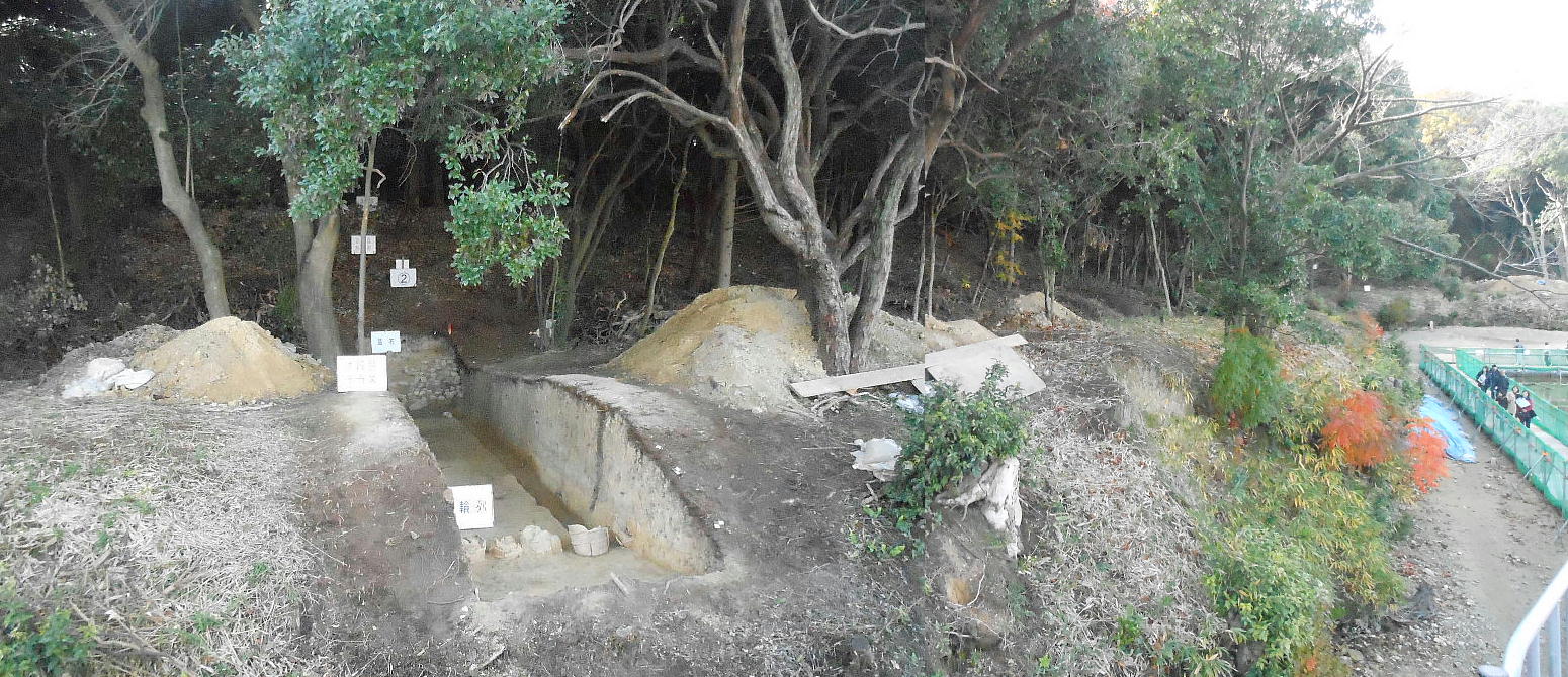 普段は、ここは壕の水の中である。堺市は今回の調査に当たって、調査区の壕の水をみんな抜いたらしい。宮内庁もよく許したね。