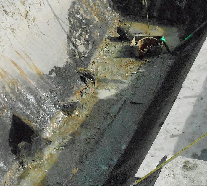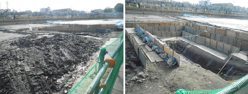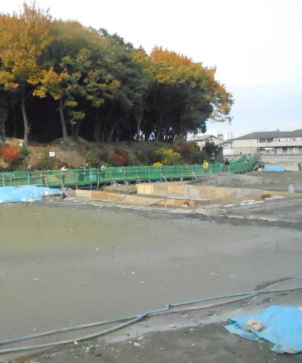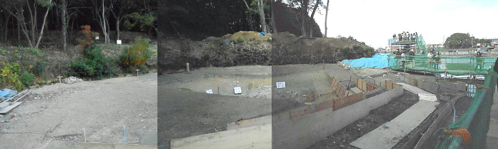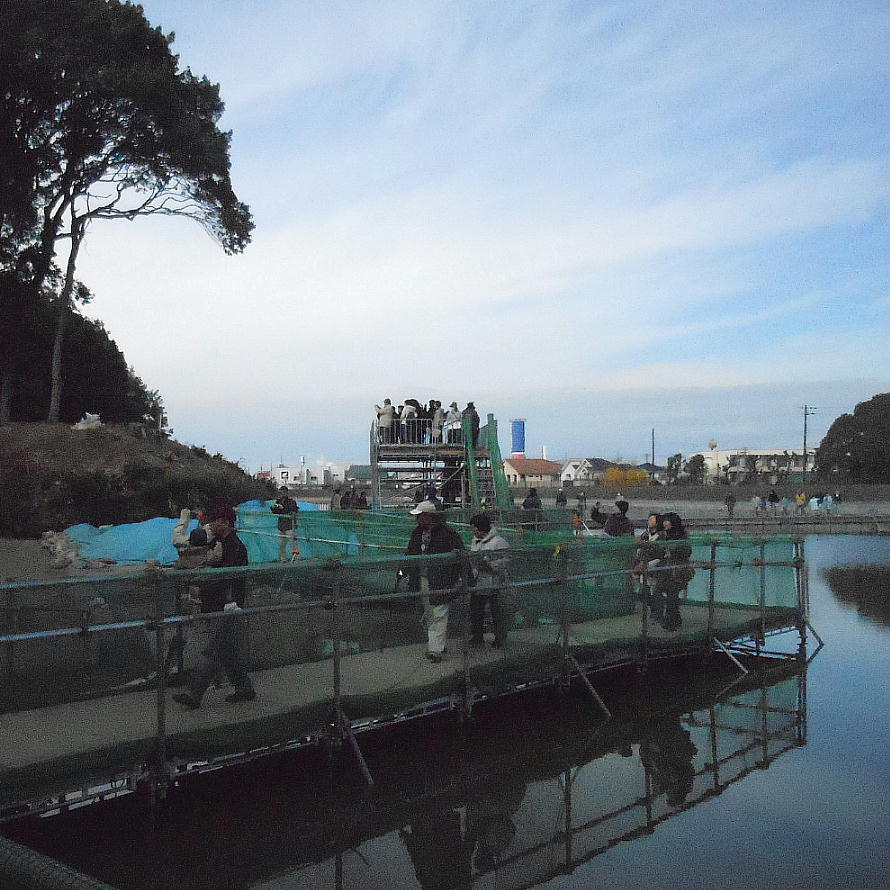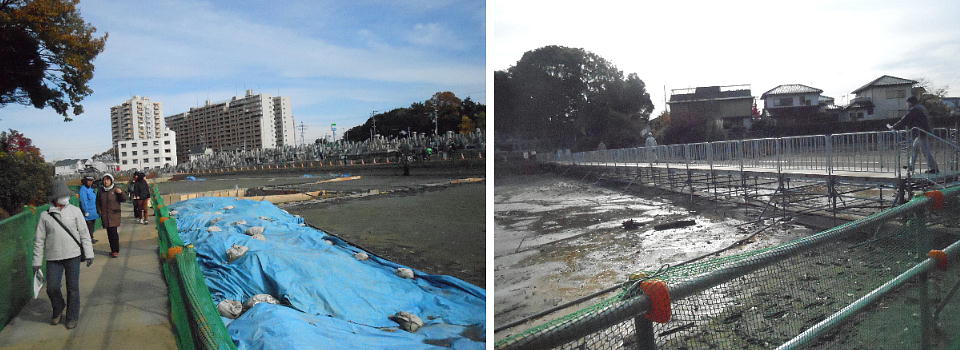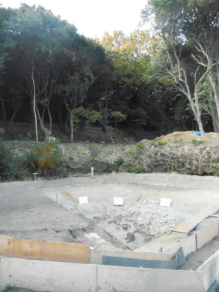 普段は、ここは壕の水の中である。堺市は今回の調査に当たって、調査区の壕の水をみんな抜いたらしい。宮内庁もよく許したね。