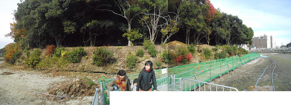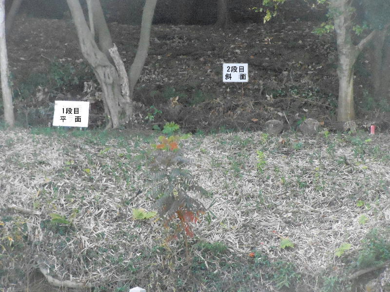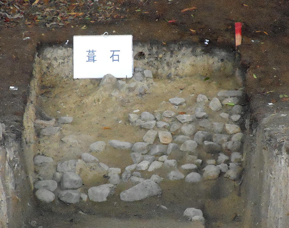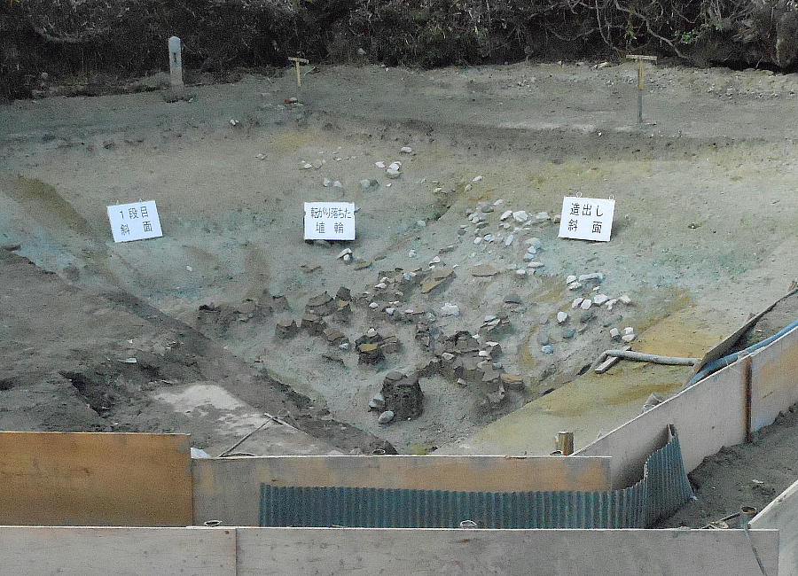 葺き石の向こう側に木片が幾つか顔を出している。何かあったのかと思って係員に聞いてみたが、「材木が倒れて埋まったものでしょう。