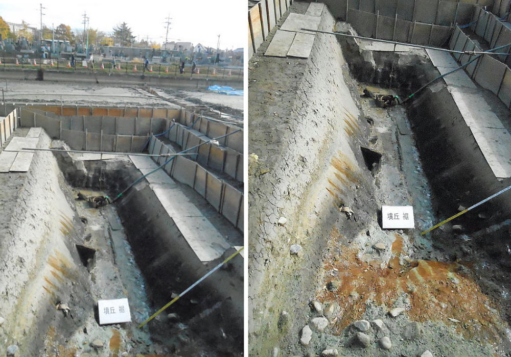 調査では、後円部に接する濠(ほり)の底で墳丘の裾を確認し、これまで裾とみられた地点より外側へ5・2メートル広がることが判明。