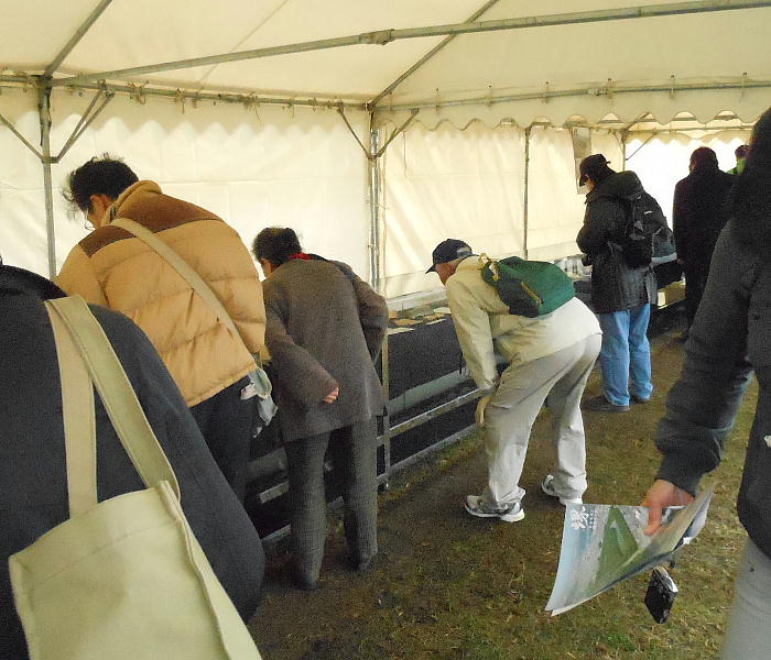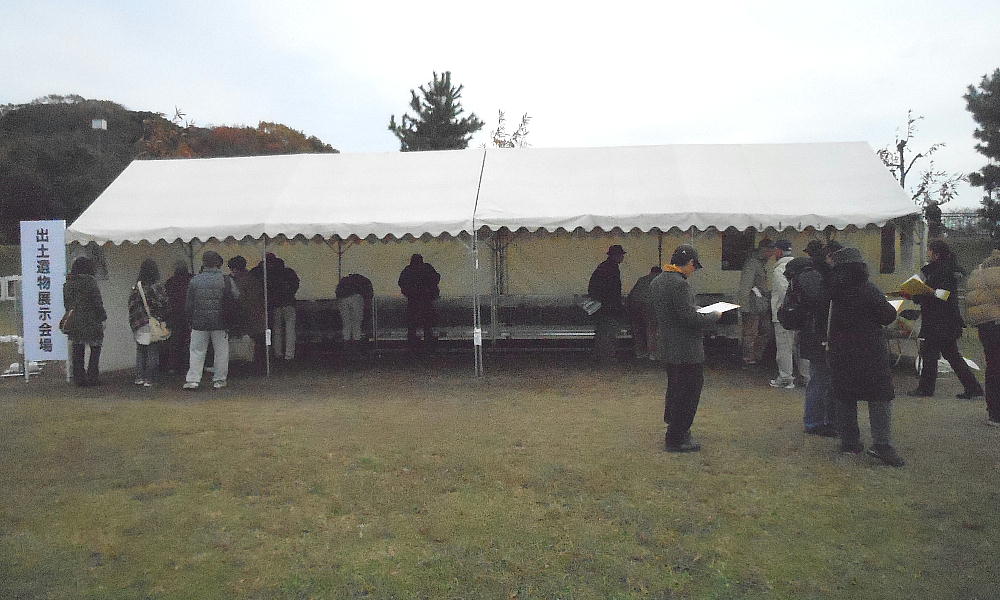 まだ出土物を見ていないので、元の説明会会場へ戻る。帰りのバスの中での話を聞いていると、ここからまっすぐバス停へ戻って展示物