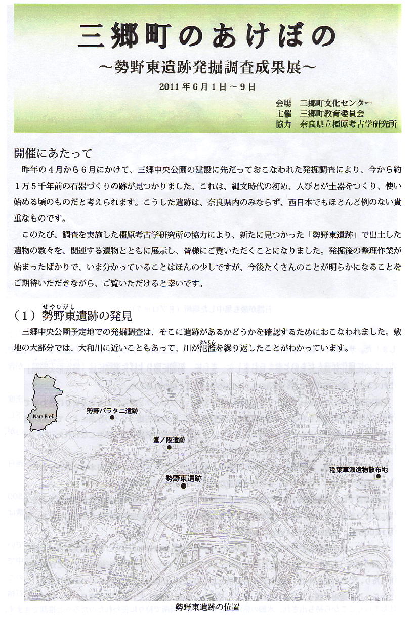 私が、例会も含めていままで見に行った石器の遺跡は、関西では以下の4つくらいかな。