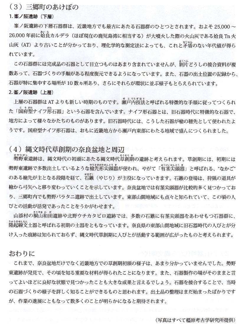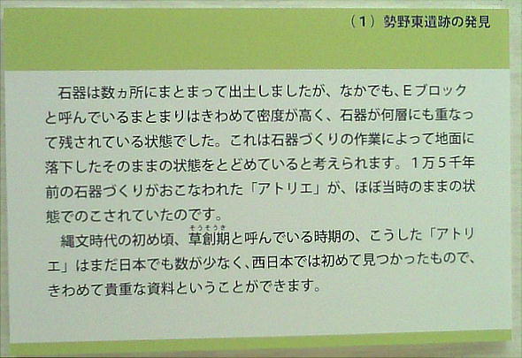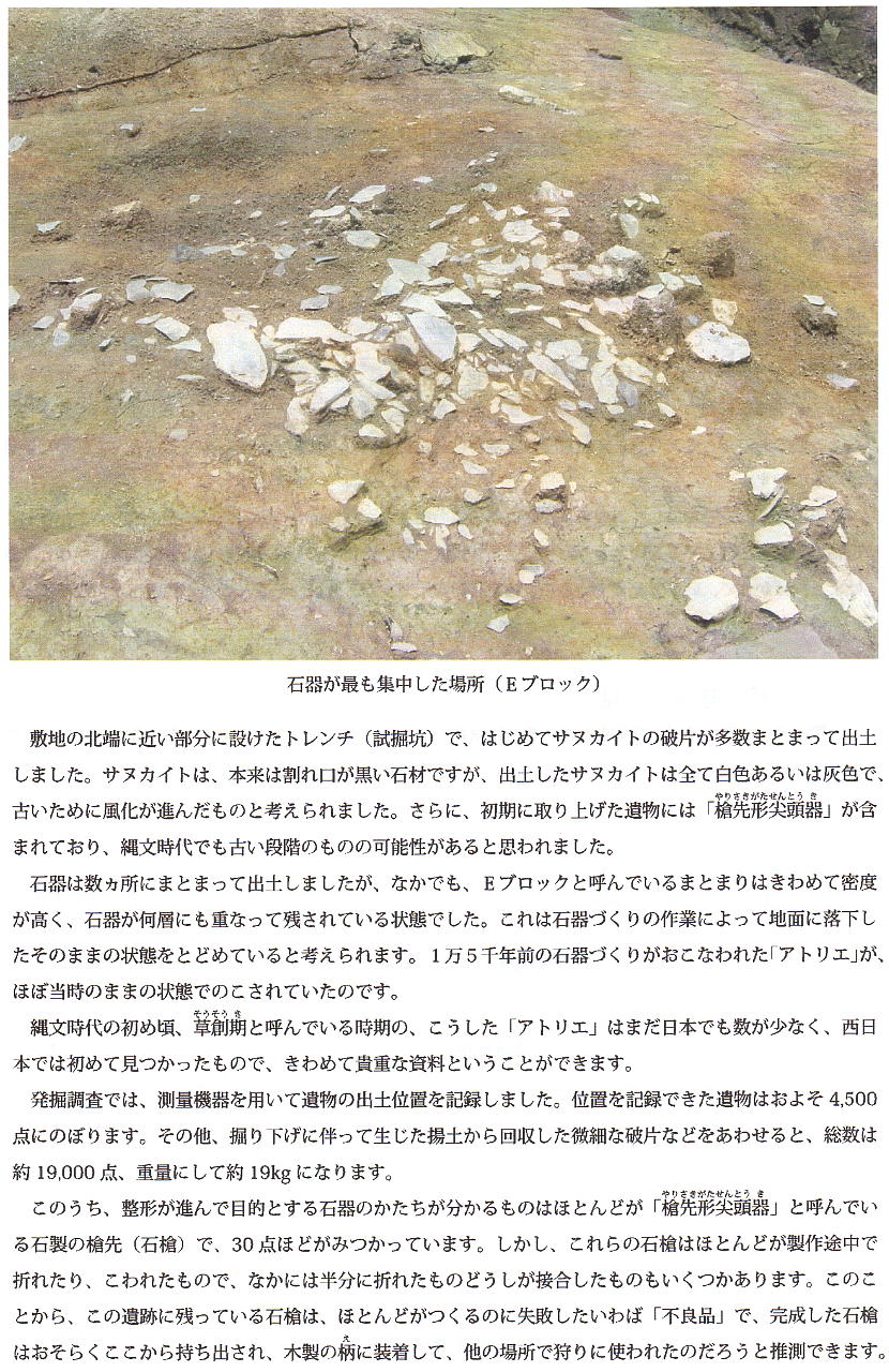 との事だったので、早速出かけて行った。縄文時代の石器工房跡は、関西ではそう多くはない。しかも草創期という今から1万