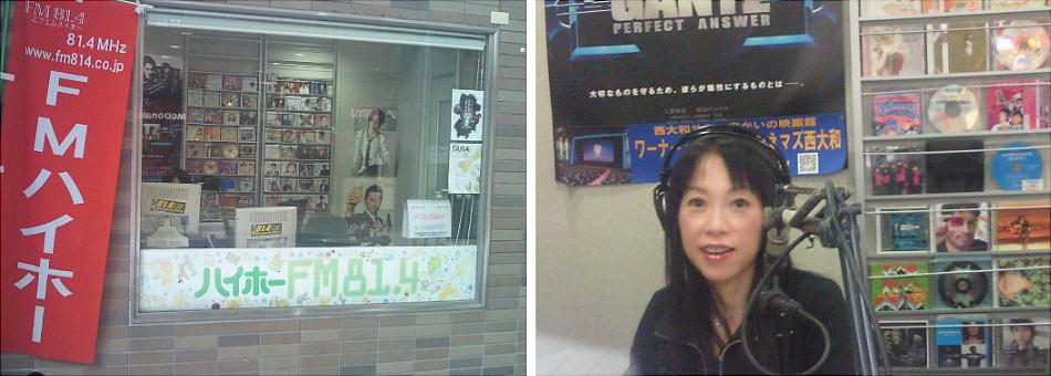 ビルの一角に小さなFM放送スタジオ814があって、お姉さんがDisk Jyokieをしていた。「写してもええか?」という素振り