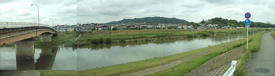 大和川の向こう側には、王子の何とか言う神社の森が見えている。