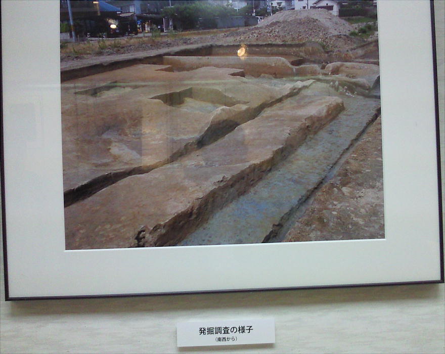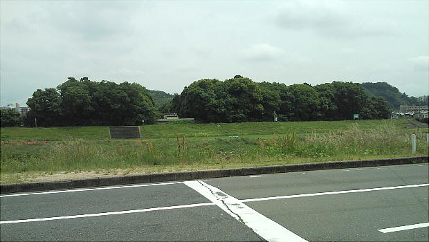 遺跡全景。昔は田圃だったところを、洪水時の水の溜め池になるようにと町が買い上げたらしい。