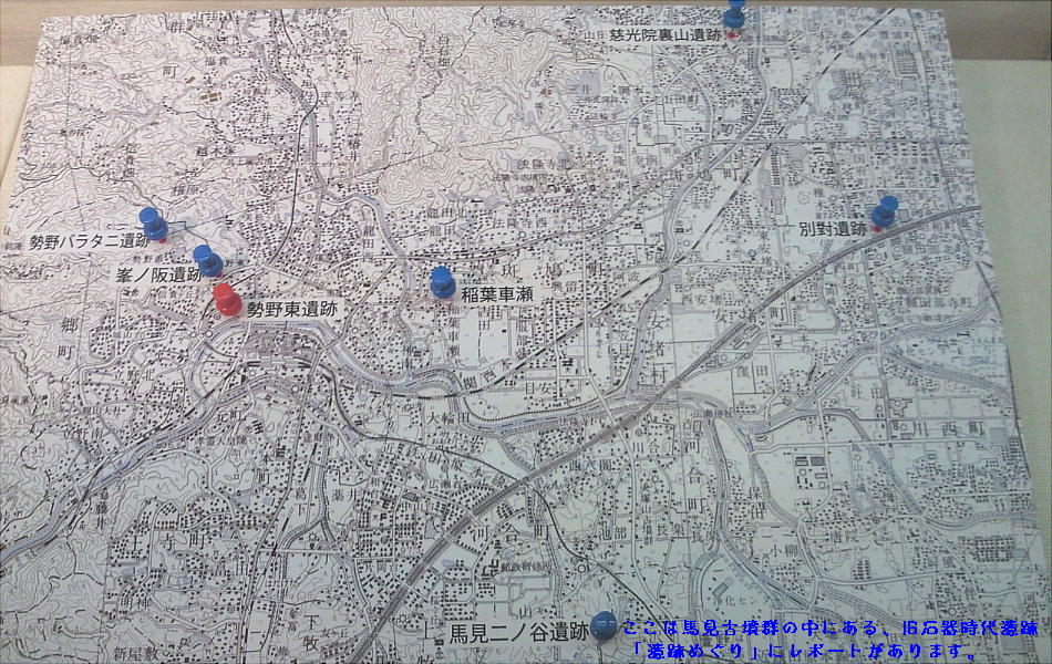 「国府遺跡」。大阪府藤井寺市。旧石器時代のナイフ形石器や、縄文弥生時代の人骨が90体以上出土した。