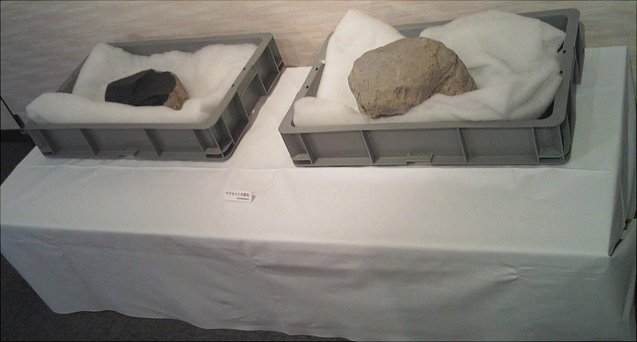 サヌカイトの原石。割ってみると中は黒い。私も「サカイ・平地山遺跡」から貰って来たものを持っているが、割ると割れた切り口