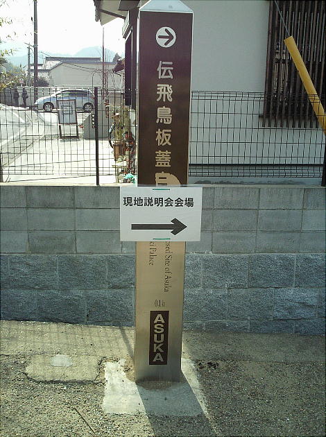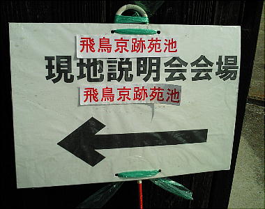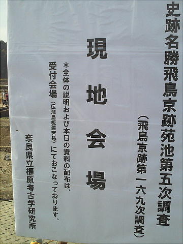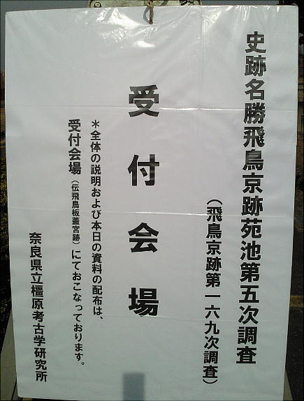 通い慣れた「飛鳥板蓋宮跡」が、説明会の受付になっていた。11時に待ち合わせをして歩いてきたので、見学客はあまり多くなか