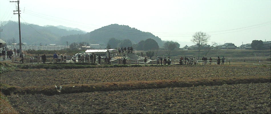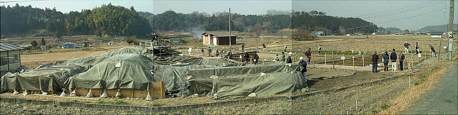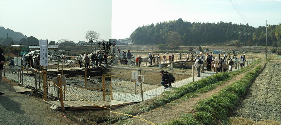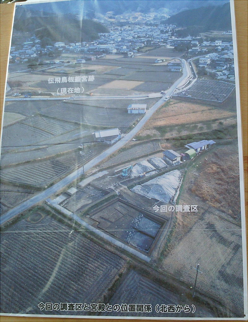 板蓋宮を後にして、農道を渡って発掘現場へ行く。4,5分だ。飛鳥川の側、前回(10年前)の発掘現場のすぐ隣だった。