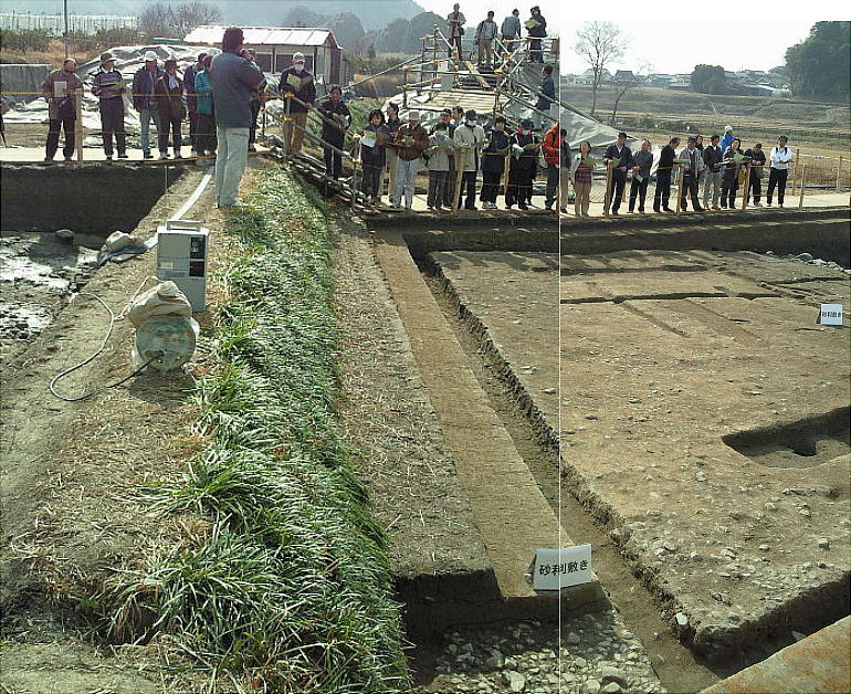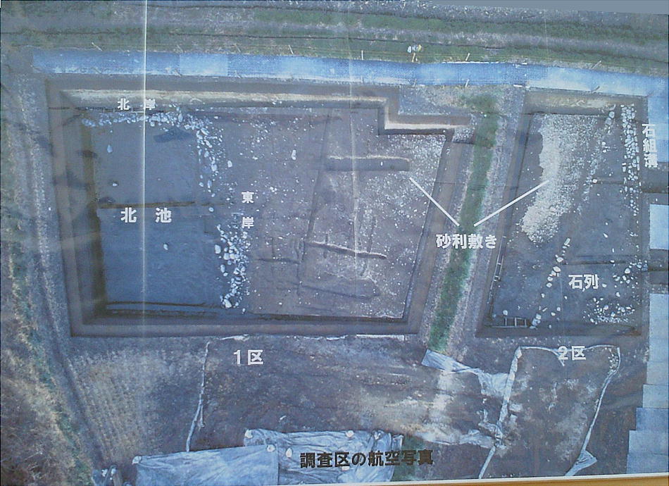 ここが南池の発掘跡。すっかり埋め戻されているが、ここはもう奈良県が買い上げているそうだ。北池から水路部分も、可能な限